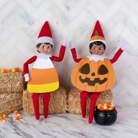 - They will surprise you, dressed up in a Halloween costume! Your elf will slip the candy corn costume over their head and tuck it into place under their collar.
