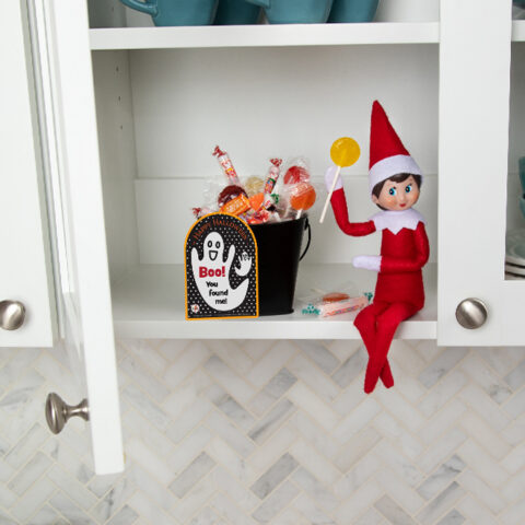 - Using tape, your Scout Elf will attach the “antlers,” as well as two googly eyes and an orange pom-pom “nose” to the clear mug.