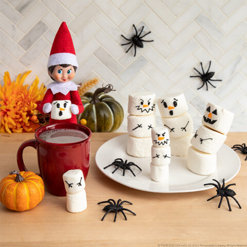- After filling each clear mug with hot chocolate, your elf will stick a straw in each and kneel on the Cheery Chair to take a sip!